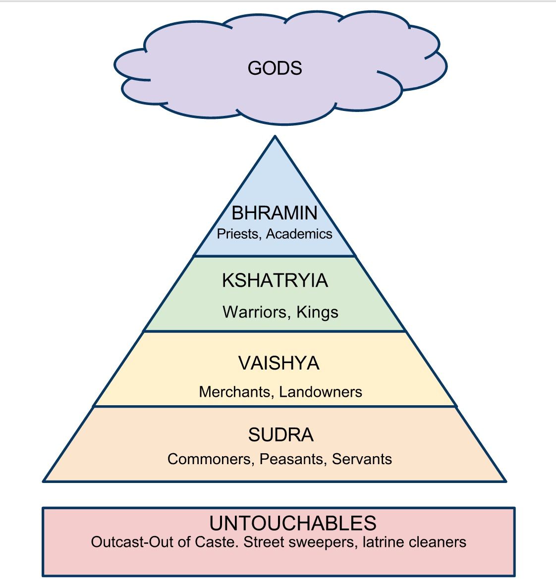 Caste system played a predominant part during ancient India. Aryans who came to India brought along with them their beliefs, customs and social behaviour. They divided the society into four castes. The four dominant castes were Brahmin, kshatriya, Shudra and Vaishayas.